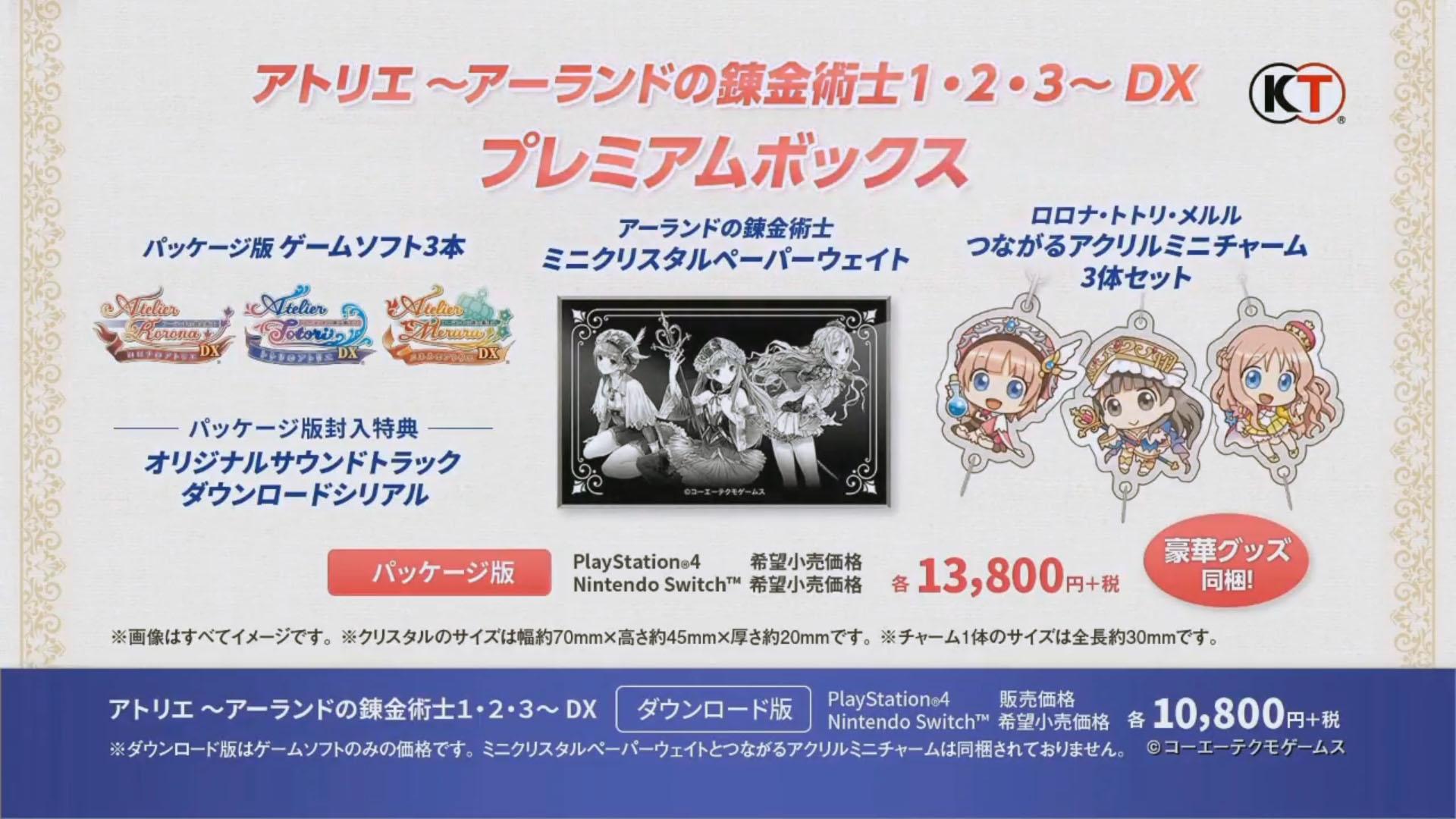 Um pacote com os três jogos também estará disponível por 10.800 ienes, além de uma Premium Box que irá custar 13.800 ienes e inclui os seguintes itens: