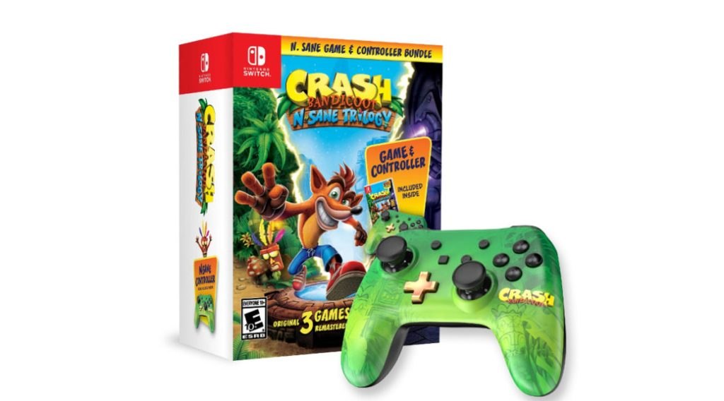 O bundle vem com um Controle estilizado do jogo Crash Bandicoot N’ Sane Trilogy w o jogo em si, numa bela caixa.