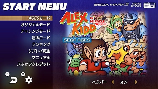 A versão do Sega Ages de Alex Kidd in Miracle World terá o modo original, que lhe permite jogar como originalmente o jogo foi lançado, mas também inclui o modo “Ages”, que permite que o jogo toque as músicas do modo FM (presente nos consoles Master System japoneses).