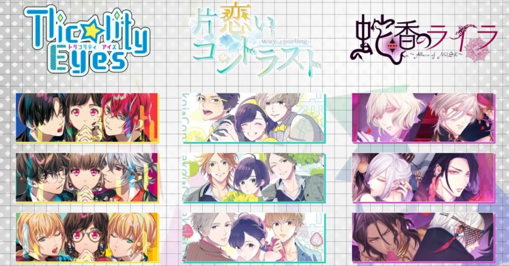 A Idea Factory estará lançando as Otome visual novels Tlicolity Eyes: Twinkle Snowtime, Katakoi Contrast: Collection of Branch, e Jakou no Lyla: Trap of Musk para o Nintendo Switch como parte da Triangle Project.