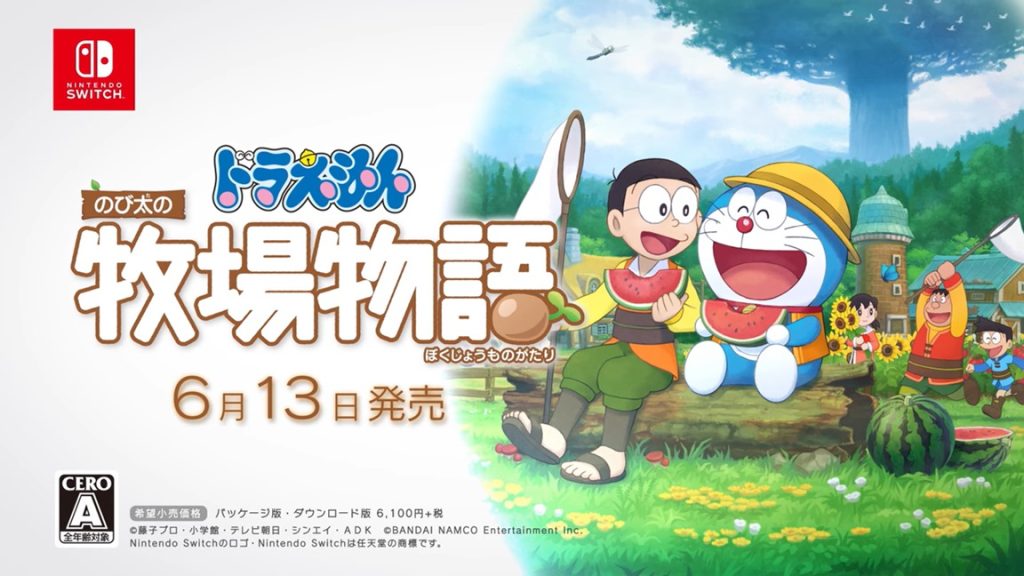 Doraemon Nobita no Bokujou Monogatari (Doraemon Nobita’s: Story of Seasons) foi anunciado durante a última Nintendo Direct com uma data de lançamento para 2019. Hoje, a Bandai Namco revelou que será lançado em 13 de junho no Japão, junto com o preço de 6,100 ienes
