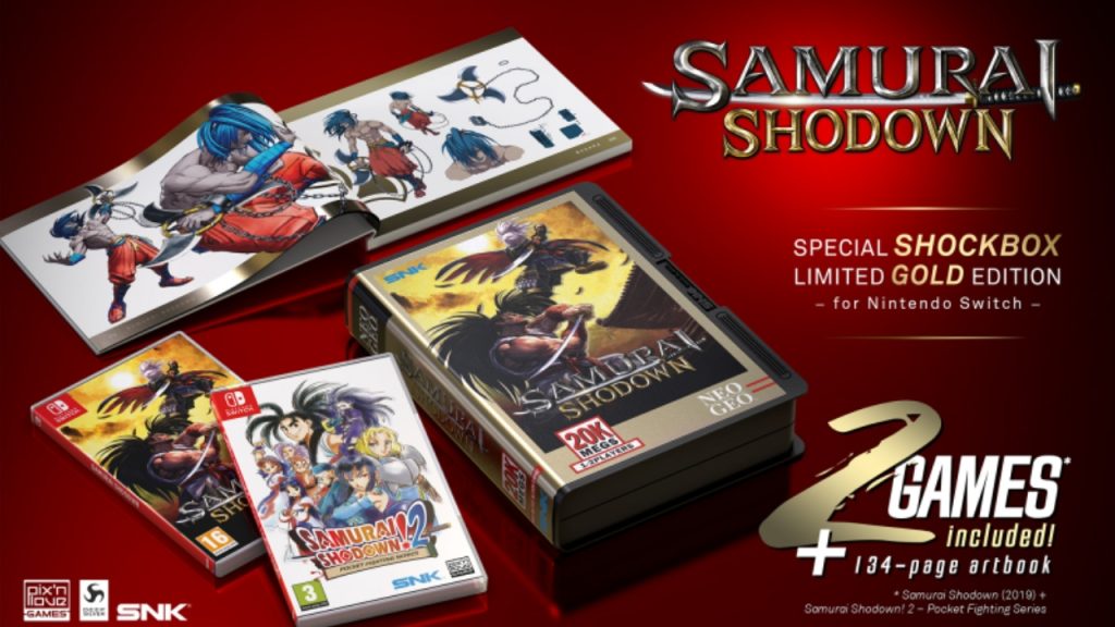 A SNK junto a Deep Silver anunciaram uma parceria com a publisher francesa Pix’n Love para lançar uma edição de colecionador de Samurai Shodown para o Nintendo Switch na Europa. Chamada de Samurai Shodown Shockbox Gold Edition, está edição inclui uma cópia do jogo Samurai Shodown, uma cópia física exclusiva do jogo de NeoGeo Pocket Samurai Shodown! 2, um manual de 134 páginas, e um estojo estilizado com todos os itens incluídos.