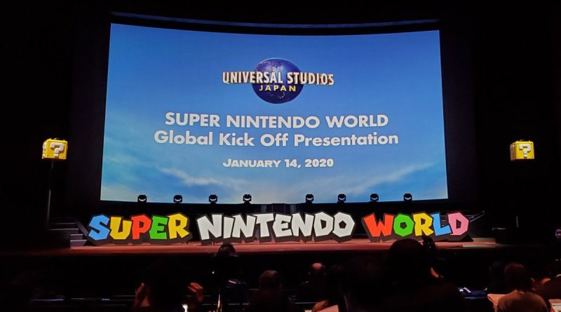 A “Super Nintendo World Global Kick Off Presentation” atualmente está sendo realizada no Japão. Várias informações foram reveladas durante a apresentação para o parque Super Nintendo World onde inclui detalhes sobre pulseiras e App de smartphones que os visitantes podem usar. Além disso, foi reconfirmado que o parque será inaugurado em Osaka no Japão antes do acontecimento das Olimpíadas de Tóquio, seguido pelos parques em Hollywood, Orlando e Cingapura.