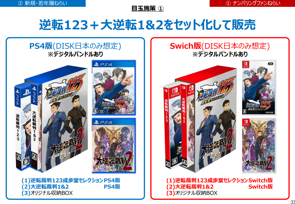 De acordo com um vazamento massivo do banco de dados da Capcom, foi encontrado a existência de uma nova IP com o codinome “GUILLOTINE” exclusiva para o Nintendo Switch, embora não saibamos do que se trata. Entre outros vazamentos no que diz respeito à plataforma atual da Nintendo, temos uma nova coletânea de Ace Attotney chamada “Ace Attorney Collection”, que na verdade é um box que inclui Ace Attoney Trilogy e uma nova coletânea ainda não anunciada com o spin-off The Great Ace Attorney: The Adventure of Ryunosuke Naruhodo e sua sequência lançados originalmente para o Nintendo 3DS.