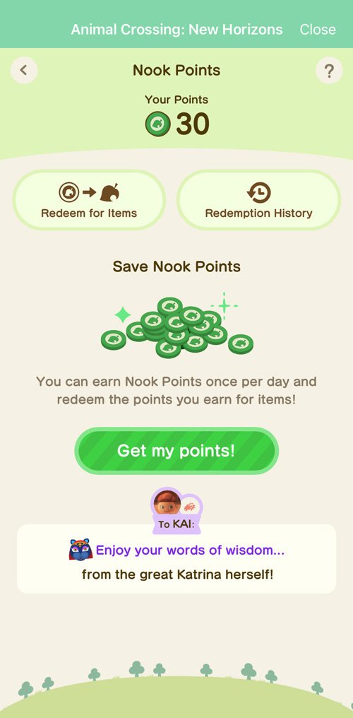 O NookLink no app para dispositivos móveis Nintendo Switch Online será atualizado no final de março. Depois de atualizado, você poderá economizar Nook Points e trocá-los por itens do jogo. Use-o diariamente e colha as recompensas!