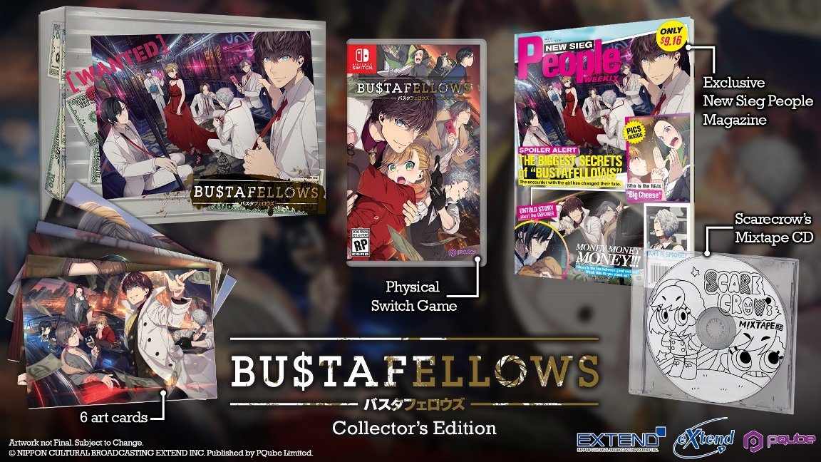 A informação atualizada para o lançamento ocidental de Bustafellows vem acompanhada da revelação de sua edição física no Nintendo Switch. O jogo contará com uma edição padrão no varejo, além de uma “Collector’s Edition”, que inclui uma cópia do jogo, uma versão resumida da revista ‘New Sieg People Weekly’, um CD da trilha sonora original, e seis cartas de arte dos personagens.