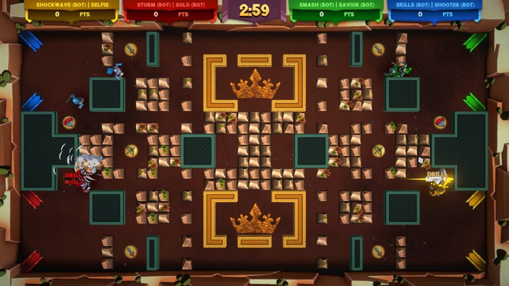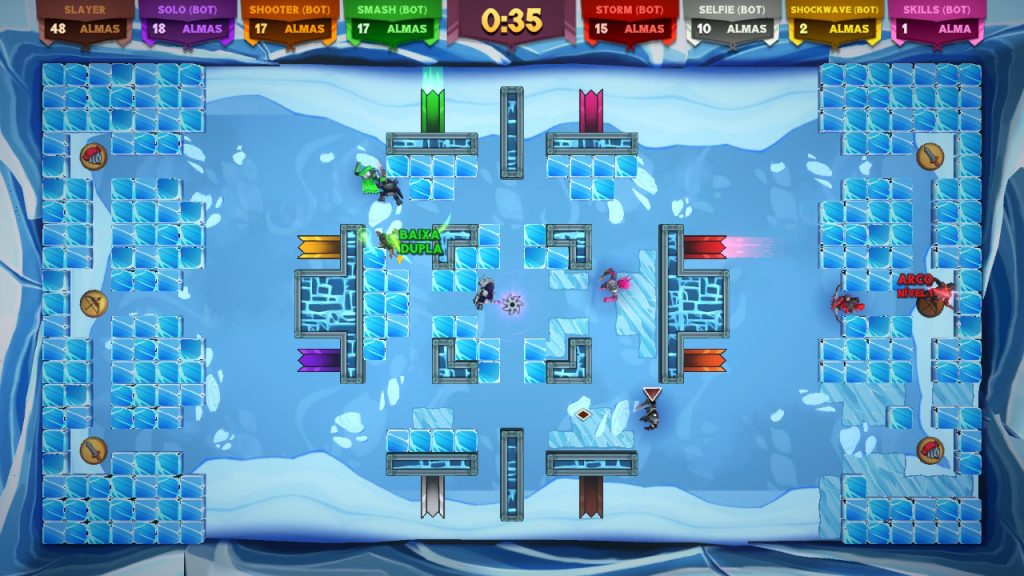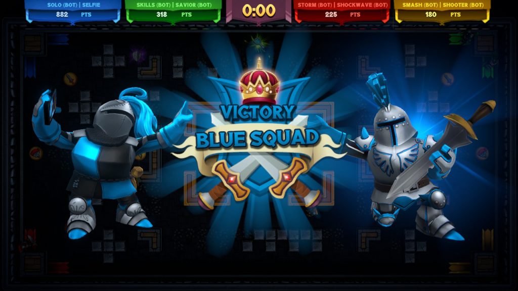 Obviamente, se é um jogo de arcade, você precisa de oponentes. Na falta de companhia, ou mesmo de controles suficiente para as 8 pessoas que o jogo aguenta, você sempre pode contar com a IA, certo? Jogar contra a máquina nem sempre garante uma boa experiência, mas em Knight Squad 2 ela é sim bastante satisfatória.