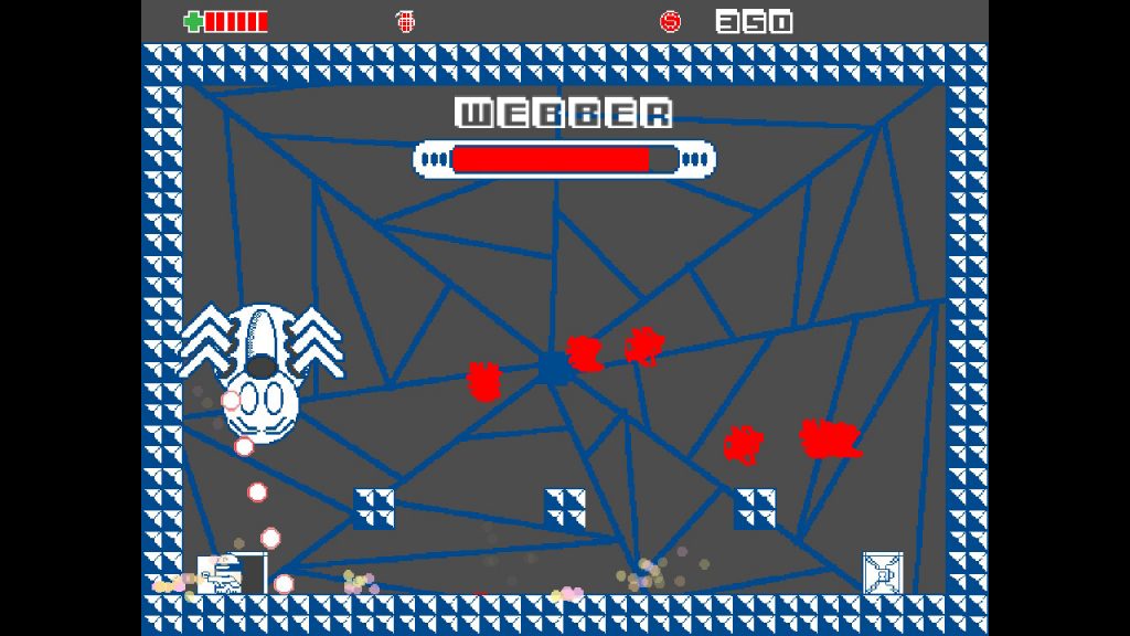 A cada x salas vamos para a loja, onde compramos Power-ups por preços exorbitantes, tais como tiro mais rápido, mais espaço pra granadas, aumentar o raio de explosão etc. Bem padrão de jogos desse tipo.
