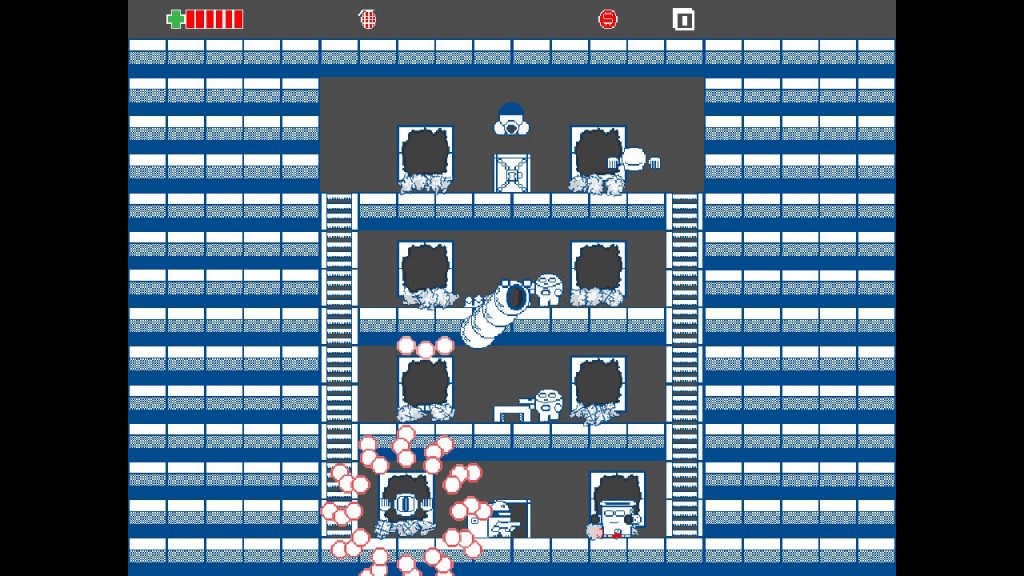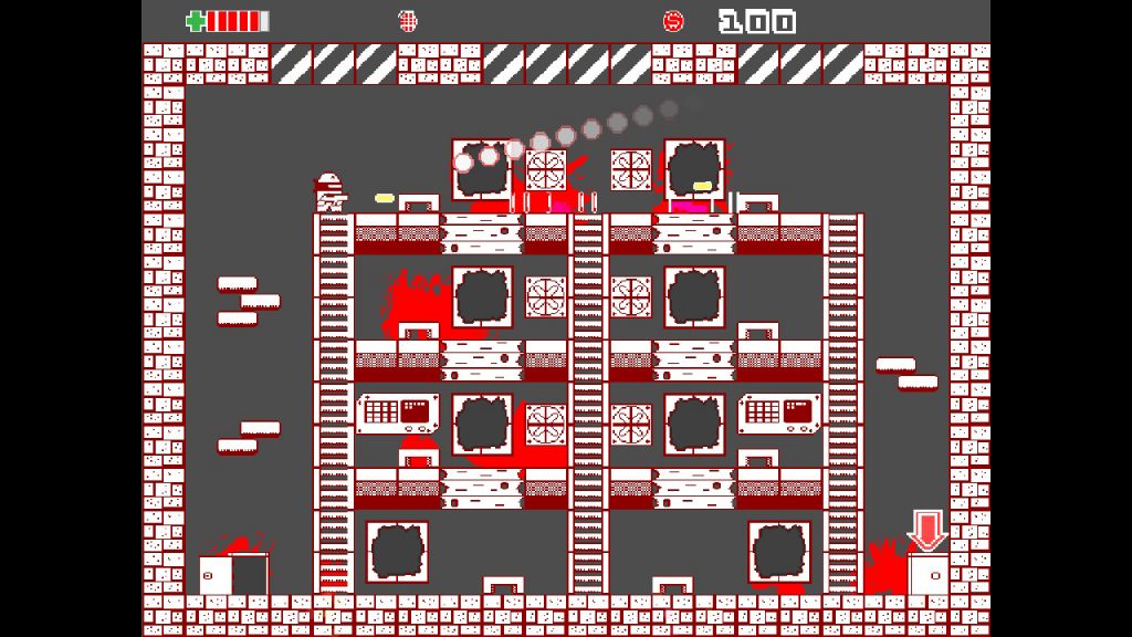 Talvez um diferencial aqui seja a violência gráfica completamente desnecessária, mas que faz maravilhas pelo jogo, tal como MK fazia. Eu sei que estou atingindo o inimigo, ele recua, pisca, faz barulho, mas é tão mais… real, mais imersivo, te traz uma experiência mais interessante ver pixels vermelhos se espalharem no cenário tão simples. Digo isso de forma surpresa, pois não costuma ser meu estilo, muito menos minha escolha visual, geralmente isso deixaria a tela poluída e desagradável de continuar jogando, mas por uma estranha razão, aqui deu certo.