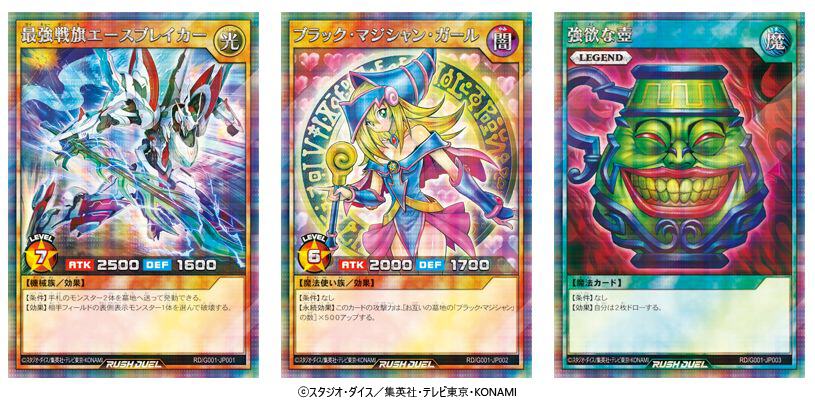 Cópias da primeira impressão de Yu-Gi-Oh! Rush Duel: Saikyou Battle Royale!! incluirá os seguintes três cards promocionais em Secret Rare: “Saikyo Battle Flag Ace Breaker”, “Dark Magician Girl” e “Pot of Greed”.