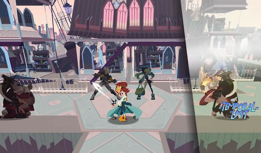 As áreas de combate são trechos em que o jogador explora um certo ambiente e deve progredir resolvendo puzzles e enfrentando os inimigos que aparecem no caminho. As batalhas surgem no clássico estilo de encontros aleatórios, comentarei mais sobre as mecânicas específicas mais a frente. Aqui os poderes temporais de Crisbell não são acessíveis, são espaços típicos de JRPG’s clássicos, os encontros aleatórios normalmente não me incomodam, porém, um grande problema da versão de Nintendo Switch são os loadings demorados, para iniciar cada batalha o jogo pode levar até 30 segundos, o que torna muito exaustivo um sistema em que o combate pode começar a qualquer momento sem aviso prévio.
