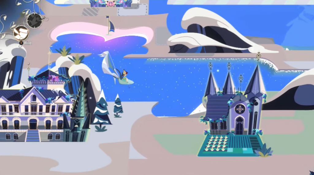Crisbell tem um acompanhante, o pequeno sapo Matias, ele pode “pular” para o passado ou o futuro nas cidades, o jogo se aproveita disso para a resolução de alguns puzzles, por exemplo, um item perdido no presente pode ser recuperado no passado ou uma informação importante pode se escutar em uma conversa que já aconteceu. O uso é conveniente e às vezes interessante, mas não chega a ser uma mecânica que altera o game profundamente, a sensação que fica é que a ideia poderia ter sido explorada mais a fundo, com situações mais complexas em que o jogador de fato resolvesse um enigma.