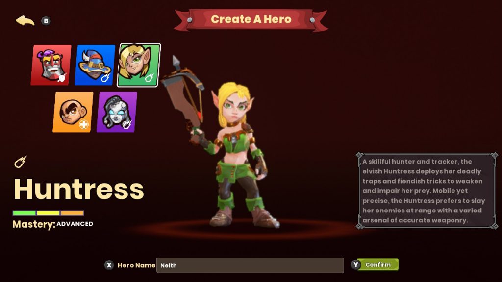 Temos alguns heróis possíveis para controlar, podendo trocar entre até 4 por vez dentro de um mesmo mapa, a cada pausa entre as horas, quando podemos montar mais proteções também. Cada um tem seu estilo de combate, suas torres de defesa, atributos etc. Quanto a isso não dá pra reclamar, temos realmente muita opção.