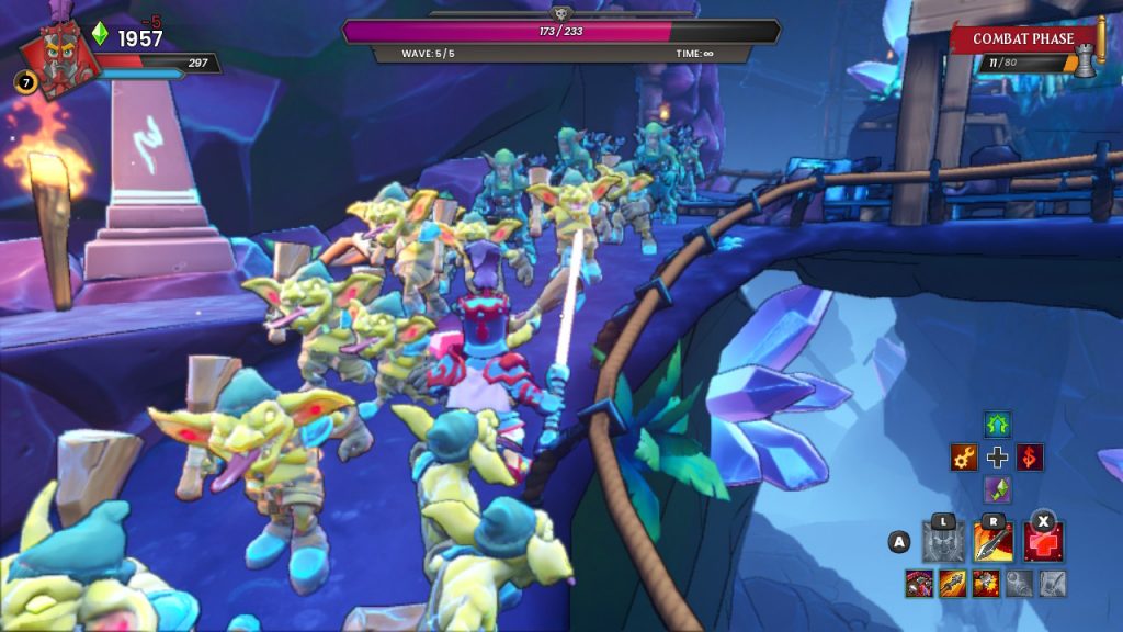 É importante lembrar que é um jogo feito para ser multiplayer cooperativo (embora não ofereça o modo local e exija uso de todos os botões básicos de um par de Joy-Cons). Temos alguns modos de jogo, incluindo desafios, modo só de tower defense, campanha, e sobrevivência, com vários níveis de dificuldade.