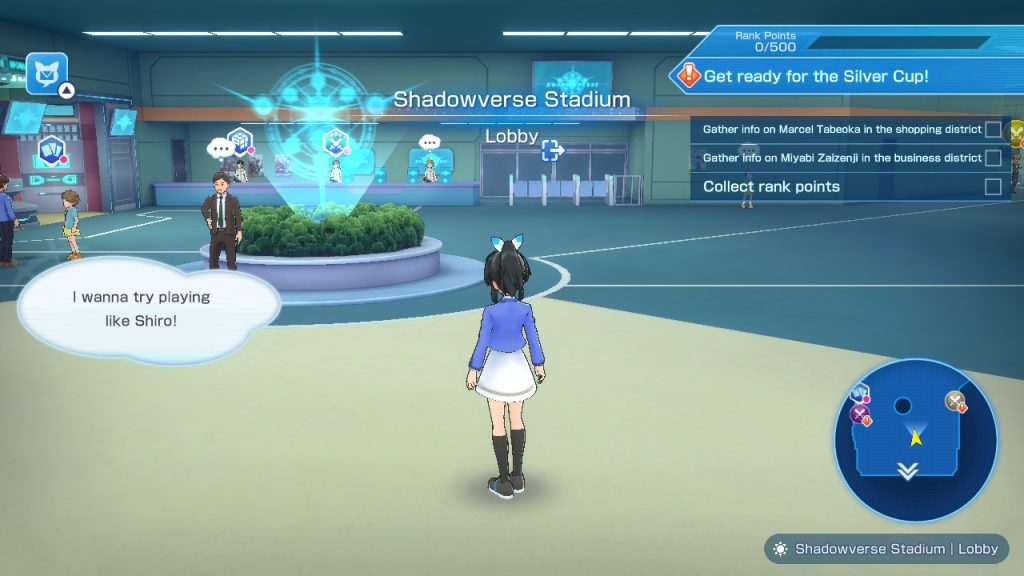 Shadowverse: Champion’s Battle é baseado no popular jogo de cartas virtual para smartphones, que por sua vez é muito popular no mundo do jogo em que estamos, chegando a ter arenas do mesmo espalhadas por quase todo o território da cidade, e conta com até campeonatos organizados, times, sistemas de pontuação etc. É basicamente o nosso futebol.