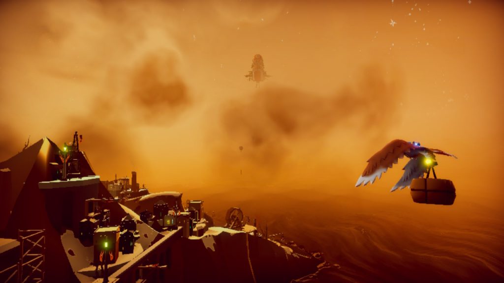 Todos estes detalhes trazem o jogo para uma aparência que muitas vezes chega a se assemelhar com pinturas, o que acaba sendo reforçado pelas nuvens volumétricas e iluminação vibrante que o jogo possui. Apesar disso, a trilha sonora de The Falconeer não chega a ser tão marcante quanto seus visuais, já que apenas em raros momentos ela passa de alguns sons atmosféricos e ambientes.