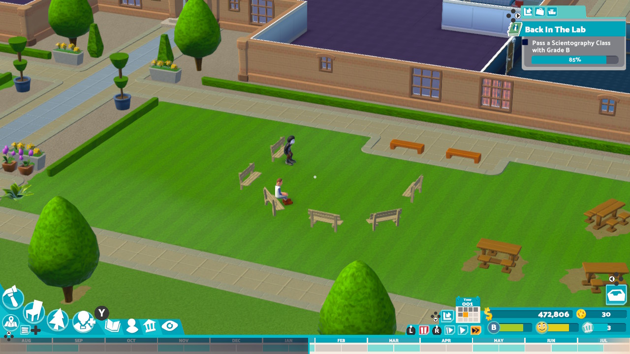 Sou da opinião de que o Nintendo Switch é uma plataforma ideal para jogos de simulação. Apesar de não ser muito poderoso, o console híbrido da Nintendo oferece coisas interessantes que só são possíveis nele. Jogar deitado em sua cama, com o portátil em suas mãos e uma xícara de café próximo de sua cabeceira, e assistir os estudantes vivendo suas vidas ao mesmo tempo que sua universidade se torna um sucesso é algo especial.