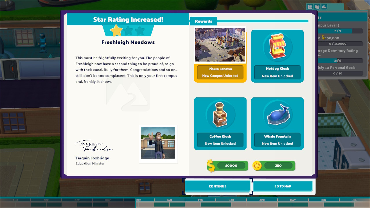Cada universidade tem um ranque de estrelas que vai de 1 a 3; ao atingir o primeiro desses níveis, uma nova faculdade se abre para o jogador. Completar todos os ranques concedem novos itens a serem utilizados na próxima campanha. É preciso atingir certos objetivos, tais como, atingir uma nota alta ou completar um evento especial, para conseguir as estrelas.