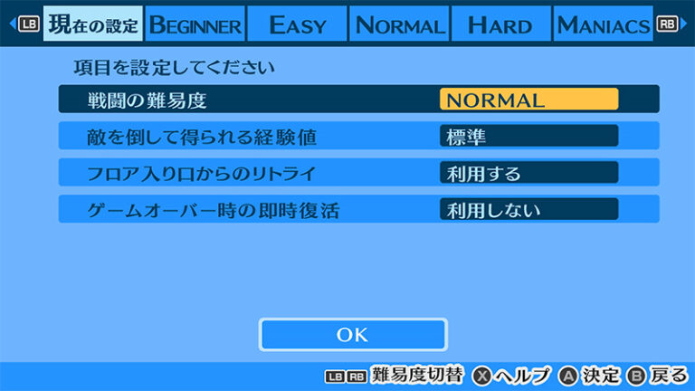 O nível de dificuldade que você conseguiu selecionar em sua segunda run agora pode ser escolhido ao iniciar o jogo. Como o nível de dificuldade não afeta o desenvolvimento da história, “Muito Fácil” ou “Fácil” são recomendados para jogadores que querem apenas curtir a história.