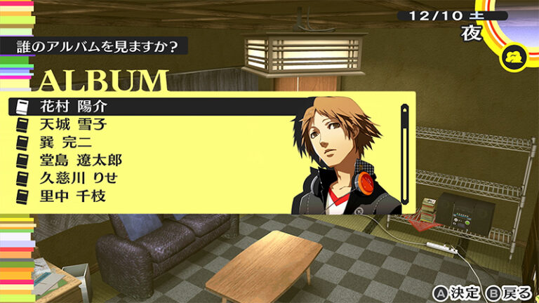 Uma nova função foi adicionada ao Persona 4 Golden, que permite que você revisite as cenas anteriores do álbum em seu quarto. Você também pode escolher respostas diferentes daquelas selecionadas quando reproduziu a cena pela primeira vez.