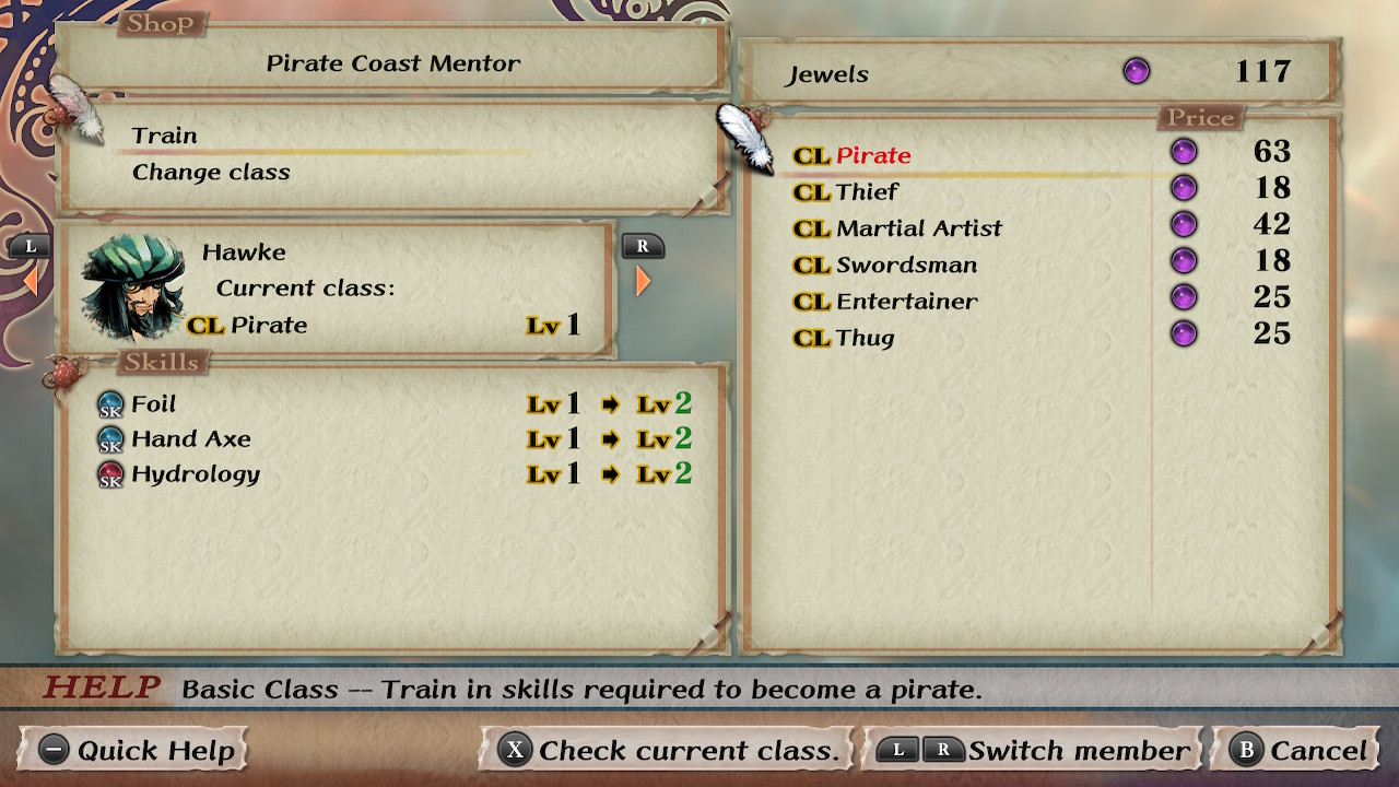 E o segundo recurso, as joias, são utilizadas para melhorar o nível de suas classes, aumentando consigo todas skills nelas inclusa, porém, é bom saber previamente que ao chegar no nível 3 com qualquer classe, desbloqueamos a opção de usar as joias para upar apenas as habilidades individuais do personagem, sem necessidade do resto do pacote da classe, e até podendo escolher skills de fora de sua proficiência inicial, assim podendo-se gastar menos do recurso e focar no que realmente será útil para você. E aumentar as skills é de extrema importância, pois elas não só melhoram seu desempenho no combate com melhoria na proficiência de armas e magias, mas também estão ligadas a exploração, podendo utilizar skills de travessias como Jump, ou então para furtividade, evitando que inimigos te notem tão facilmente. É muito importante administrar bem o uso de suas joias para melhor sua party tanto para o combate quanto para sua experiência na exploração ser o melhor possível.