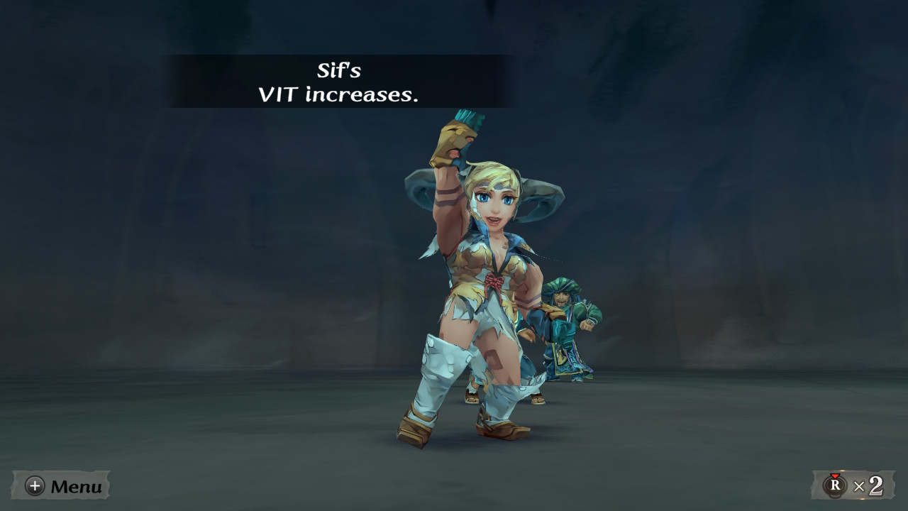 Indo para uma outra área do jogo agora, o sistema de combate também não é de um padrão convencional que costumamos ver no gênero, primeiro de tudo não temos um sistema de level up e experiência, similar como ocorre em Final Fantasy II, ao fim de cada batalha os personagens terão seus stats aumentados com base no decorrer da luta, e quanto mais se fortalecem, mais fortes os monstros que encontram ficam.