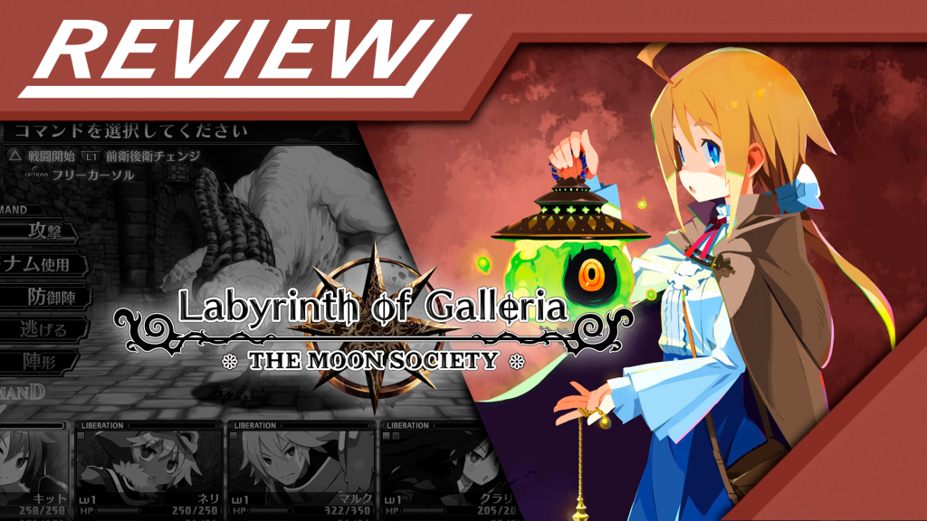 Labyrinth of Galleria: The Moon Society é um Dungeon Crawler RPG desenvolvido pela Nippon Ichi Software, daqueles com perspectiva em primeira pessoa e de movimentação por quadrantes, sendo um sucessor espiritual de Labyrinth of Refrain: Coven of Dusk, de 2016.