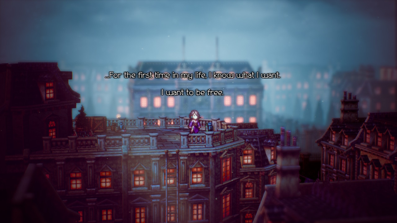 E aqui na sequência esta fórmula aparenta se repetir, pelo menos pelo início da aventura, onde vemos a abertura da história de cada personagem, suas personalidades, o local onde vivem, seus conflitos e motivos para sair numa jornada pelo mundo sendo apresentadas de forma totalmente independente dos outros. Porém, no marketing de Octopath Traveler II ficou bem propagado que eventualmente algumas dessas histórias se entrelaçariam mais ao percorrer da jornada, então fico no aguardo para julgar isto depois de ter a experiência completa.