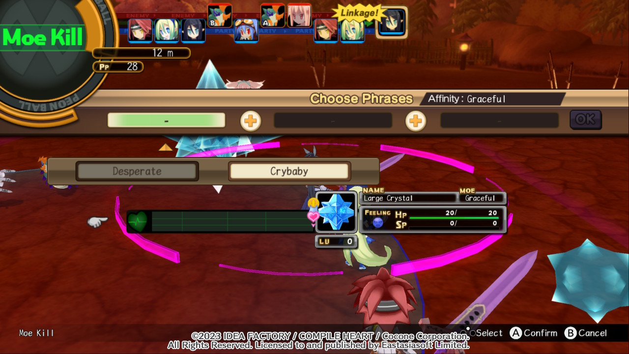 Para além disso, Chou-Chou em particular também pode usar a mecânica de apelo moe para converter inimigos e cristais. Usar esse sistema faz diferença, aumentando os bônus obtidos ao final da batalha e servindo como uma forma de obter itens a mais em vez de depender puramente do combate. Porém, o jogo inclui uma trava limitando o número de vezes que é possível se transformar durante as batalhas, o que força o jogador a já ter em mente a forma que deve ser ideal em cada área em vez de poder se adaptar à ocasião durante o combate.