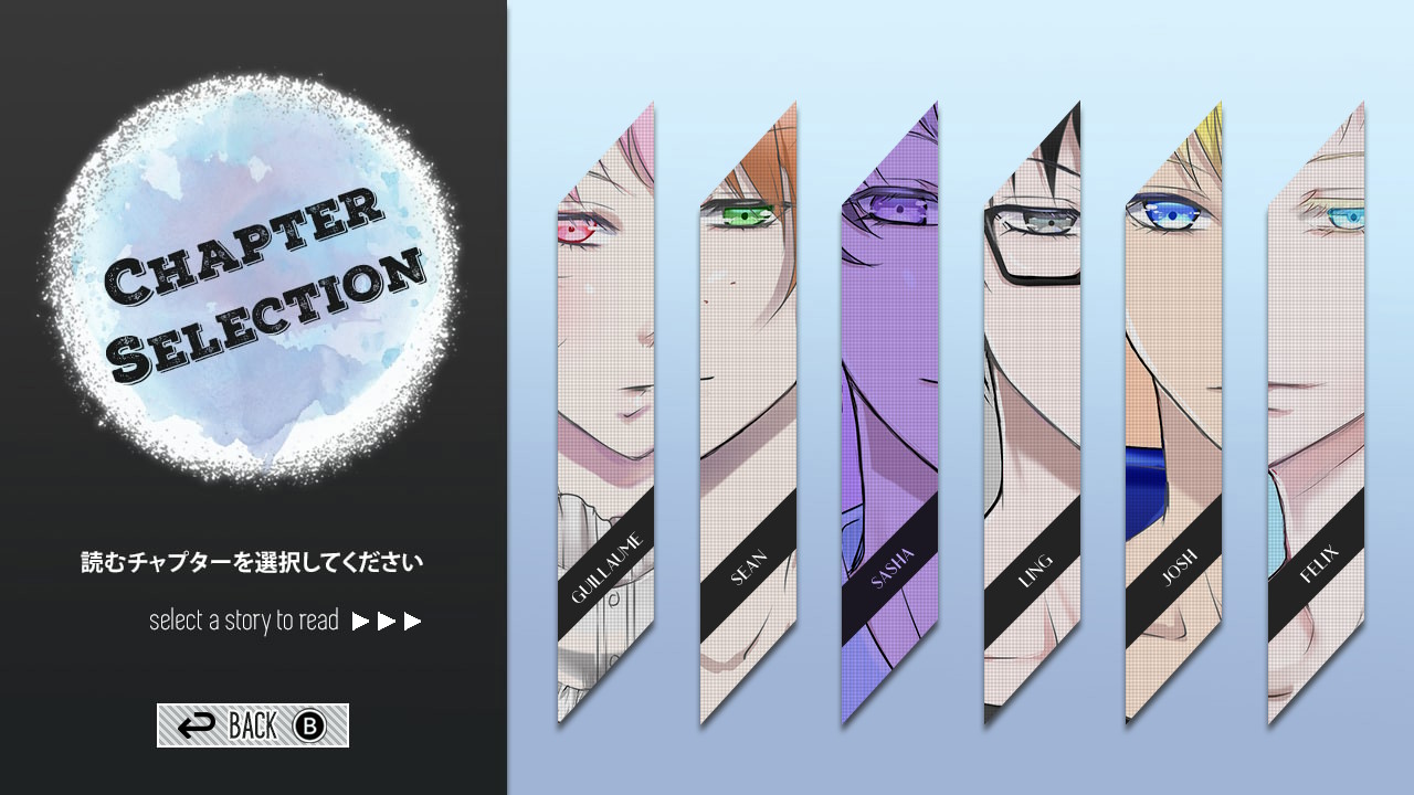 Cada personagem conta com um menu separado dentro do Continue e é possível escolher revisitar qualquer uma das suas cenas até a última desbloqueada. São ao todo dois finais, um ruim e outro bom, para cada interesse romântico dependendo das escolhas feitas. As rotas incluem cinco momentos de decisão e fazer a escolha certa é representado por um ícone de coração. No menu principal, é possível saber se uma cena possui um coração, mas não há nenhum indicador para que o jogador mantenha em mente sua situação atual, sendo ideal voltar ao menu principal em todos os casos de escolha ruim.