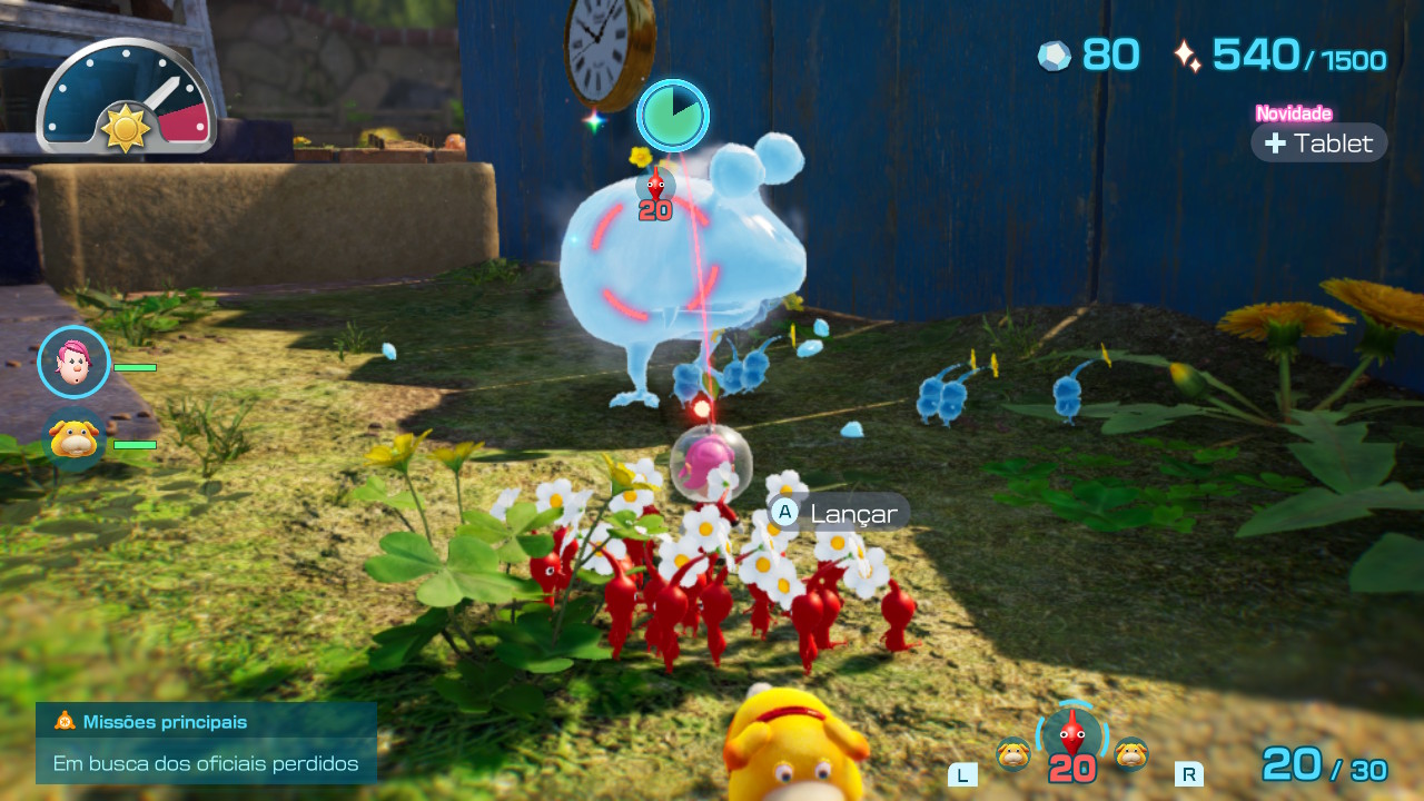 Minha principal expectativa com a Demo, especificamente, era a de ter uma boa noção do novo sistema de jogo. Deslocando a câmera de uma visão isométrica ao chão, e adicionando o Salvacão Otchin (Oatchi, no original), minha maior preocupação com o jogo como um todo era de que forma isso se mesclaria com o sistema de jogo voltado à estratégia em tempo real dos título anteriores. Queria também, é claro, conferir a adaptação em PT-BR que a Nintendo está oferecendo ao título, curioso com a forma como os tradutores preservariam o charme dos diálogos originais. Por último, não esperava receber mais informações da história do que as oferecidas em trailers, mas estava curioso em ver como conectariam o título a seus predecessores.