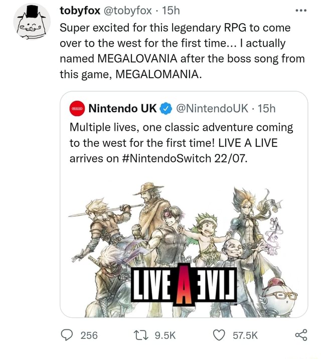 Um pouco antes de jogar LIVE A LIVE, no seu dia de lançamento, eu estava passando por alguns problemas pessoais, e apesar de não ser de fato uma depressão, eu estava preso em uma espiral de ódio próprio e apatia que me fazia me sentir mal jogando qualquer jogo, eu ficava a maior parte do tempo jogando coisas como “Tetris 99” nas chances de tentar sugar aquela última gota de adrenalina quando aparece aquele “10 Players Remaining”, mas de qualquer forma, eu não me divertia mais jogando, isso foi, até lançar os 2 jogos de Julho/2022 que me prenderam: LIVE A LIVE (Remake) e Xenoblade Chronicles 3.