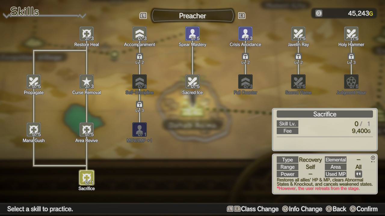 Além de poderes ativos (ataques mágicos e físicos, buffs, debuffs e magias de cura) que são listados em combate quando uma classe está equipada, também há várias habilidades passivas. Basta desbloqueá-las para usar quando quiser independente de qual a sua build atual, o que permite, por exemplo, usar equipamentos outrora inacessíveis a uma classe. As opções são muito vastas, permitindo criar personagens maleáveis em suas capacidades de ataque físico, magia e suporte ou extremamente eficientes em um desses fatores.