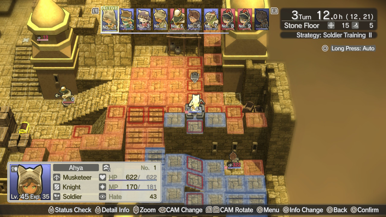 Dentro dos combates, além do posicionamento estratégico das unidades, o jogador pode manipular um sistema chamado Hate, que funciona como um aggro, ou seja, um medidor da agressividade que os inimigos tem contra a sua unidade de acordo com os golpes utilizados. Algumas habilidades são focadas nesse fator, dando ao jogador formas de favorecer sua equipe deixando um personagem como escudo para os seus aliados. Infelizmente, outras técnicas que não foram feitas para abusar do sistema de Hate não contam com descrição desse parâmetro, dificultando um pouco o controle preciso em algumas ocasiões.