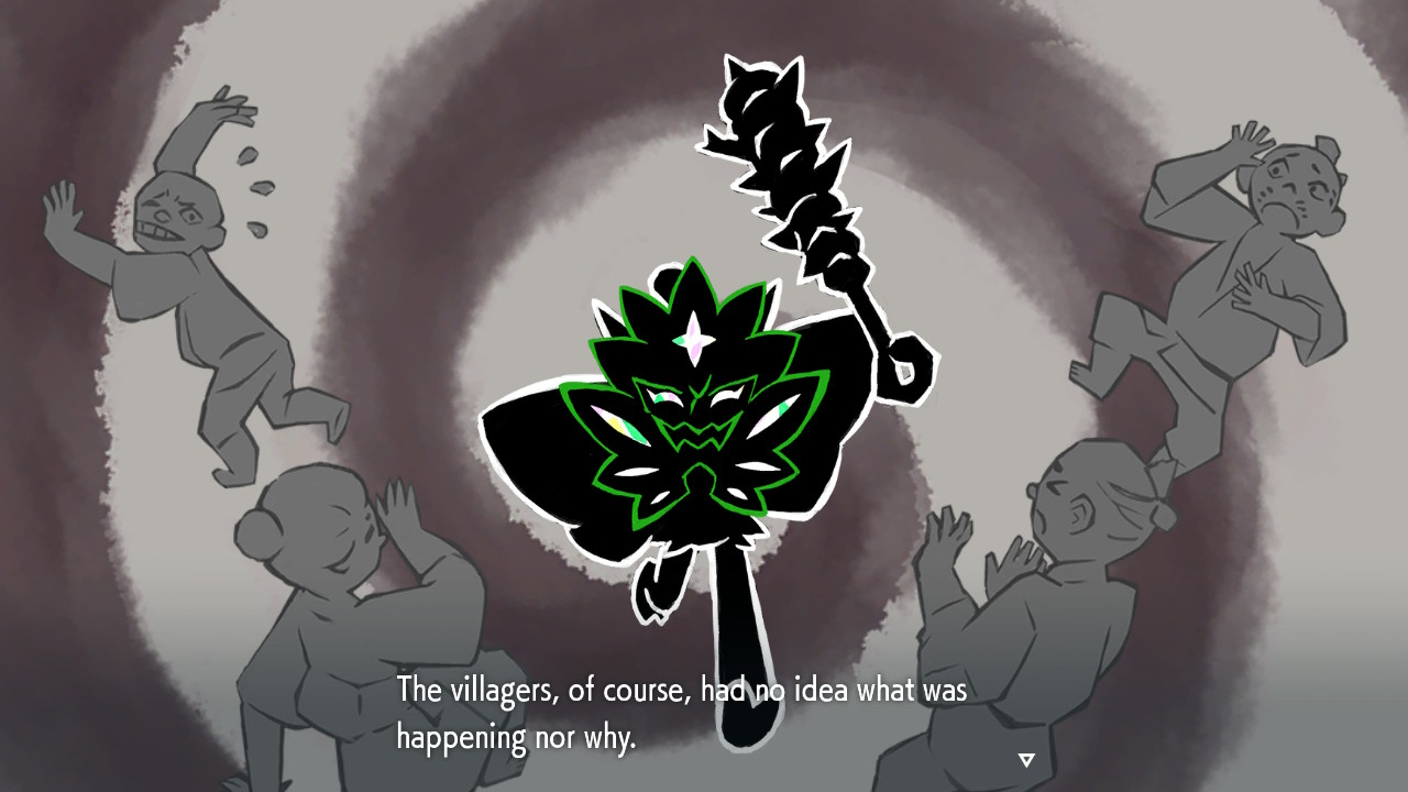 Buscando mais sobre a história, o avô dos irmãos (não deram um nome pro personagem, realmente faltou muito aqui ein Game Freak?) revela a verdadeira história do folclore e que na verdade a vítima da história é a Ogerpon, e que o Loyal Three são, na verdade, os “Três Vacilões”! Viram só, cuidado com o que escutam por aí. De qualquer forma, Kirean ouve tudo escondido e, sem entender, têm uma crise de ciúmes e insegurança achando que está sendo excluído e abandonado, rouba a máscara, e te desafia para uma batalha, o que desperta o trio! A batalha é interessante, mas poderia ser mais desafiadora para alguém do plot principal.