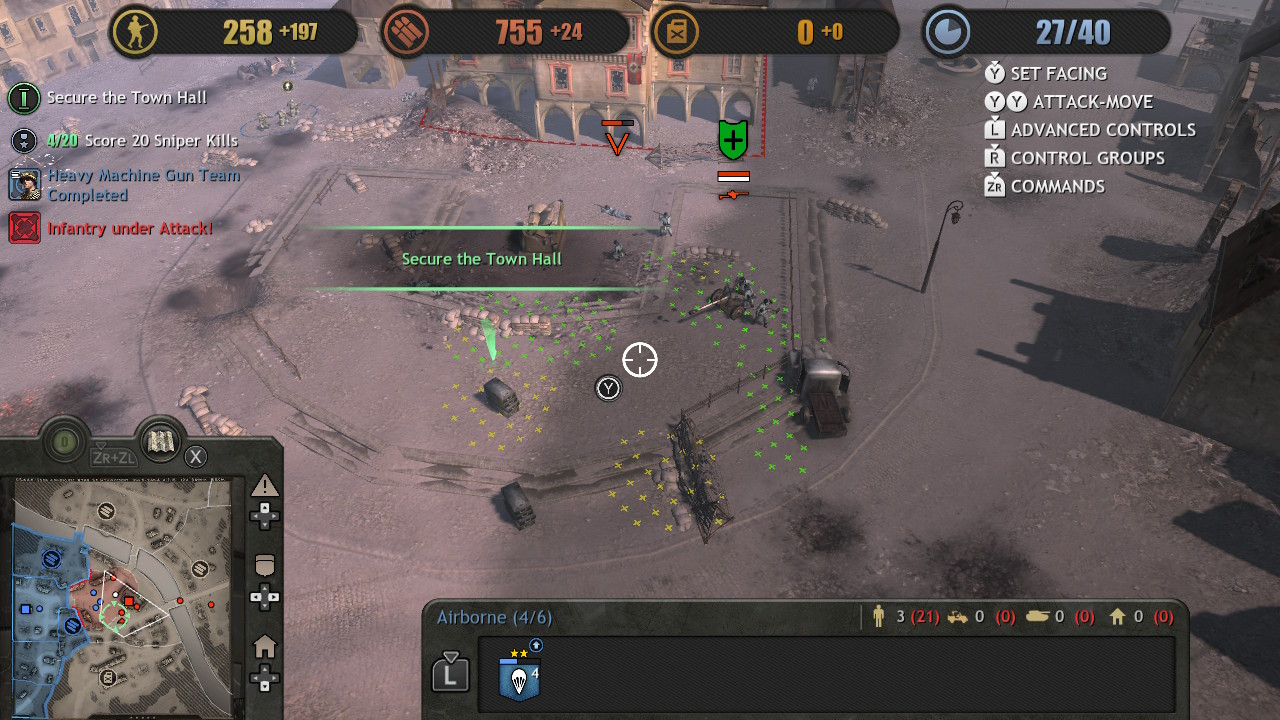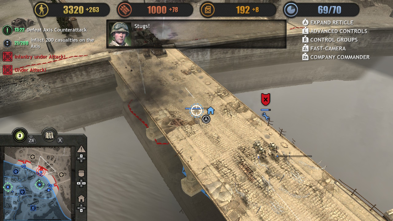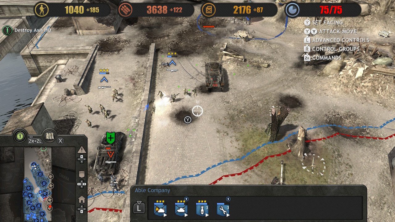 Company of Heroes Collection chega ao Switch trazendo a jogabilidade original, mas adaptada para ser jogado com um controle convencional. A facilidade de ter o jogo rodando sem problemas no híbrido, e com uma UI que agrada aos olhos e de fácil acesso, é graças a Feral Interactive se baseando na versão do título disponível para aparelhos mobiles, que também foi portado pela desenvolvedora em 2020.