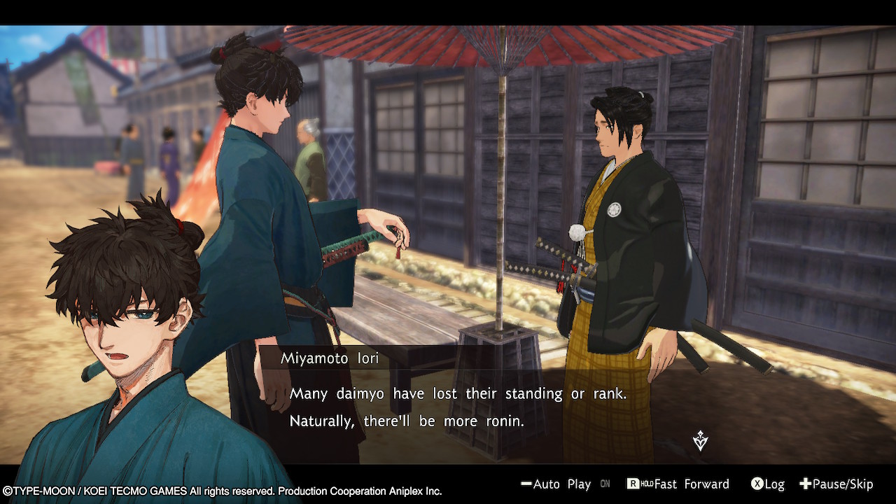 Os fãs veteranos da franquia vão se sentir em casa com essa premissa. Essa não é a única referência à série como um todo, obviamente: a narrativa de Samurai Remnant é cheia de referências e easter eggs, desde certos eventos da narrativa até personagens. Iori e Saber são basicamente novas versões de Shirou e a Saber de FSN, desde alguns de seus trejeitos — ambos os Sabers são viciados em comida — até seu mindset em relação à guerra e à vida. Iori, por exemplo, é alguém que segue fielmente o seu ideal de “caminho moral da paz”: ele não mata, evita colocar outras pessoas em perigo e, apesar de ser cuidadoso, não se recusa a ajudar os outros, igual a Shirou.