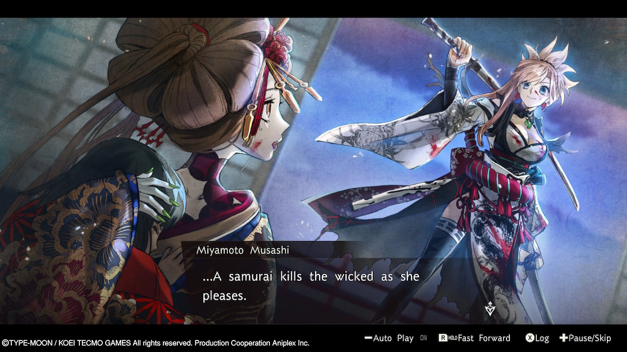 Obviamente nem tudo aqui é uma cópia de experiências passadas da série. A narrativa de Fate/Samurai Remnant leva as coisas bastante para o lado da moralidade, com alguns questionamentos sobre o certo e errado, como uma pessoa sem rumo deve viver em uma nova era e até mesmo a que ponto alguém vai para realizar seu desejo. Mesmo tendo seus momentos dignos de uma história feita para um público mais jovem, ainda há tramas um pouco mais complexas e que buscam mostrar o lado bom e ruim do mundo como um todo.