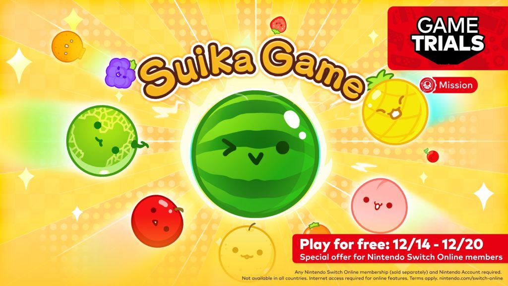 A Nintendo anunciou nesta quarta-feira (13) que a oferta do Game Trials deste mês de dezembro para os assinantes do Nintendo Switch Online será Suika Game.