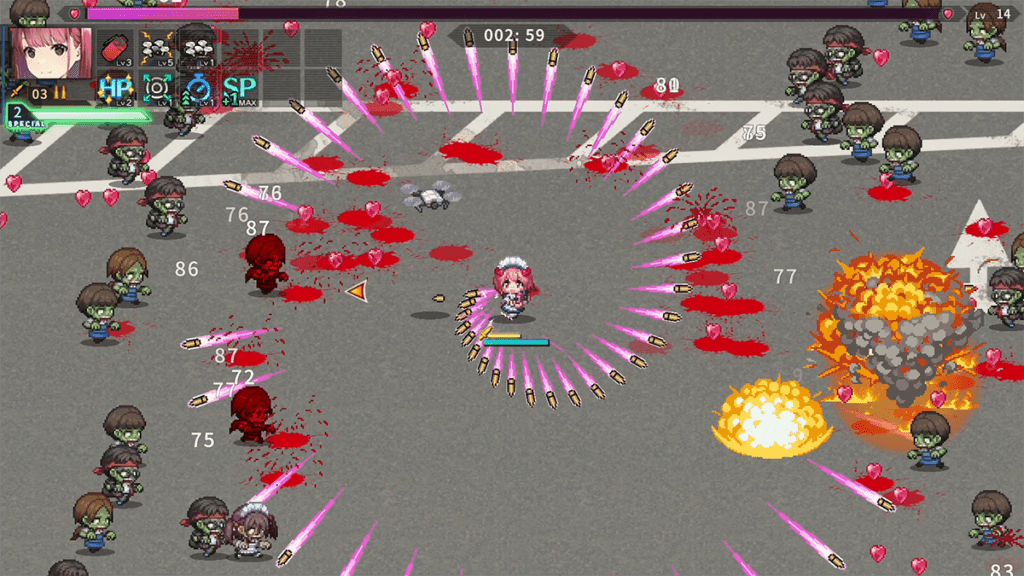 Ao derrotar hordas de zumbis e subir de nível, você pode ganhar uma habilidade aleatoriamente, incluindo a capacidade de disparar mísseis, controlar drones voadores e muito mais. Maid of the Dead ainda possui um elemento peculiar onde as roupas das empregadas vão rasgando durante a sessão de gameplay, expondo suas peles e roupas íntimas. Portanto, você precisa limpar o cenário antes de deixa-las vulneráveis.