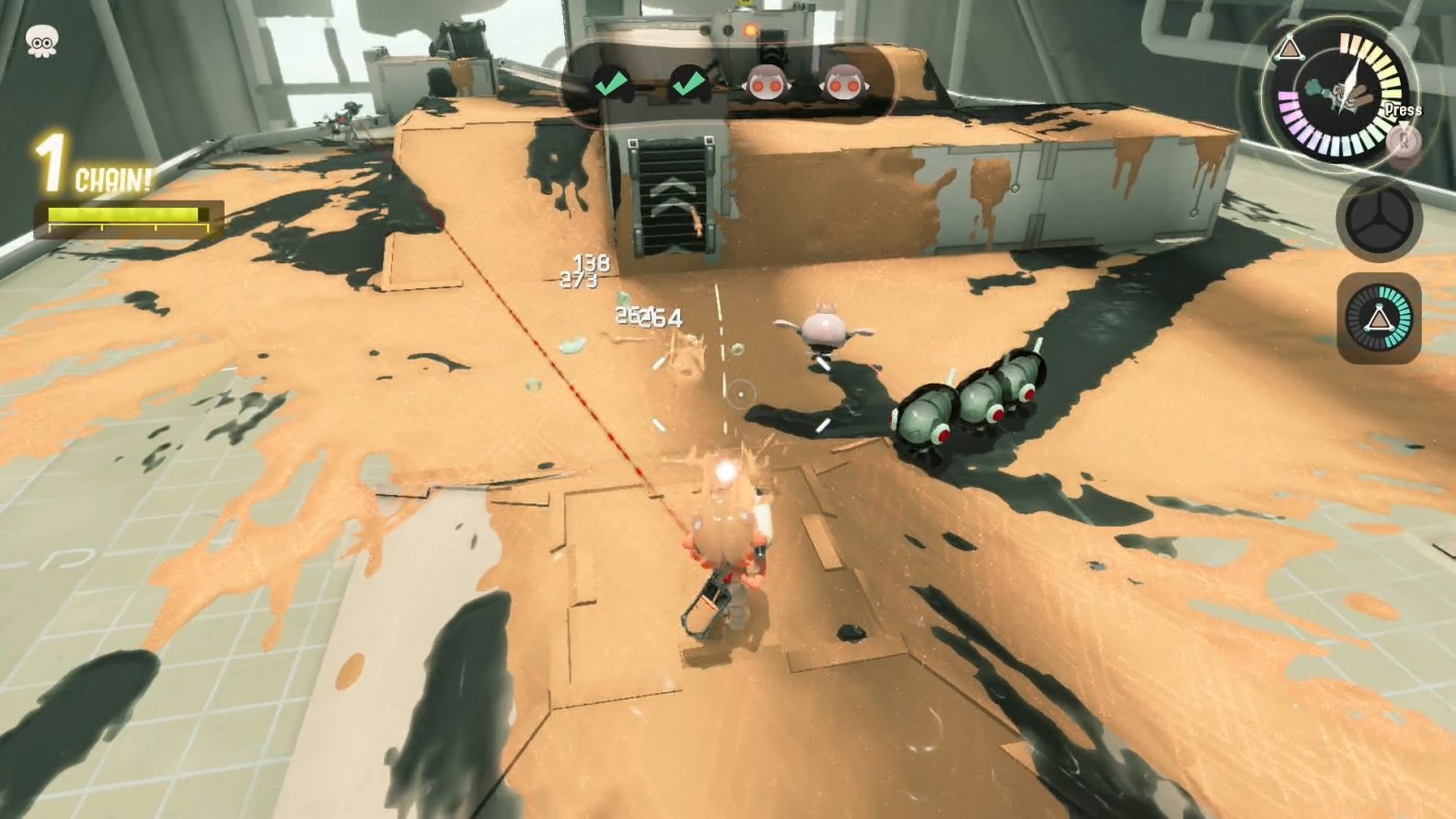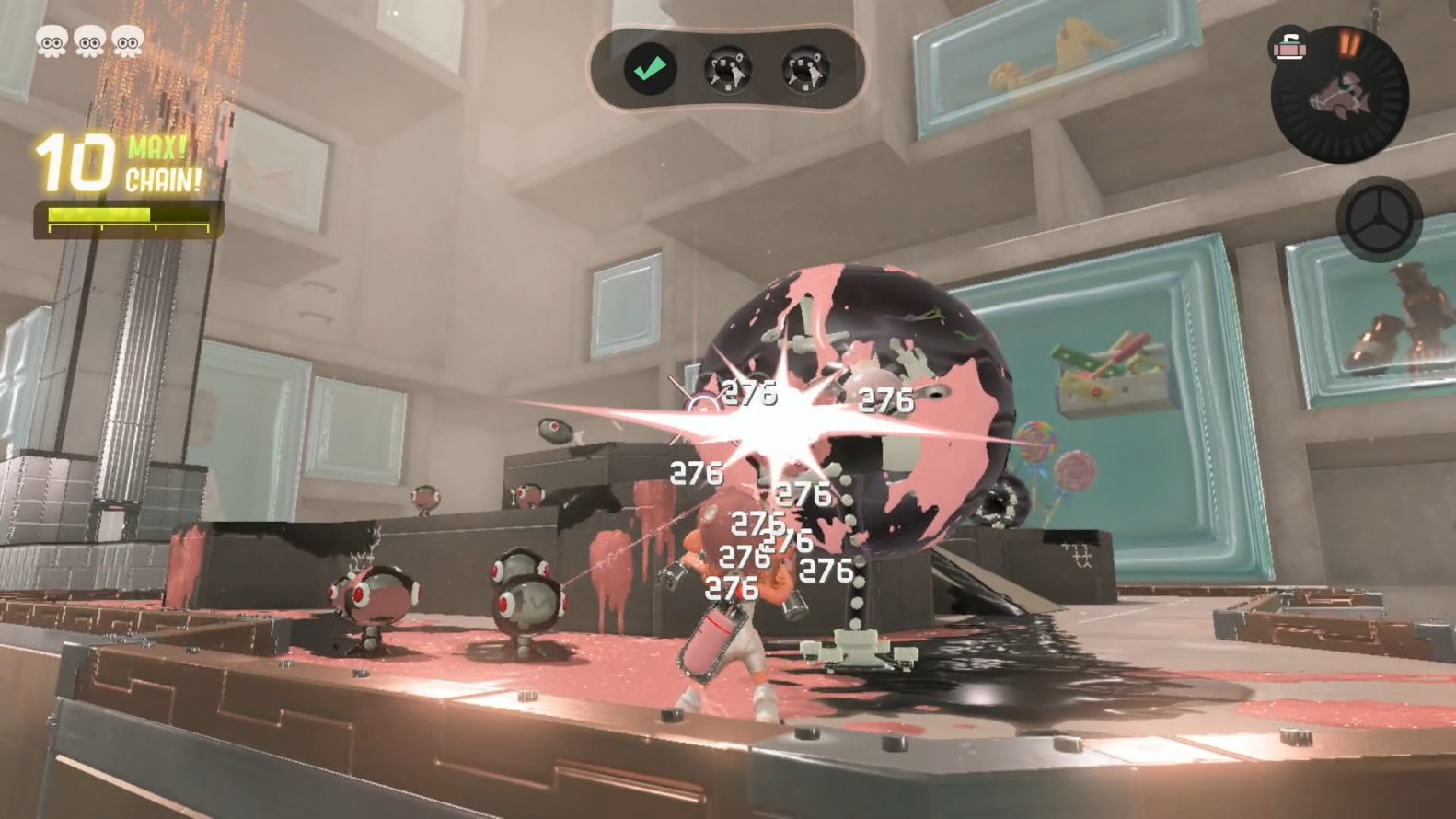 Embora os rougelites geralmente não sejam um tipo de jogo que eu jogue, não me senti que isso manchou minha diversão em Side Order. Os desafios possuem uma dificuldade bem equilibrada, e a única coisa que o impede é o quão longe o jogador decide se arriscar. E o jogo reconhece isso, com chips mais potentes por trás das missões mais difíceis. Também há diferentes paletas, que têm diferentes subarmas e armas principais.