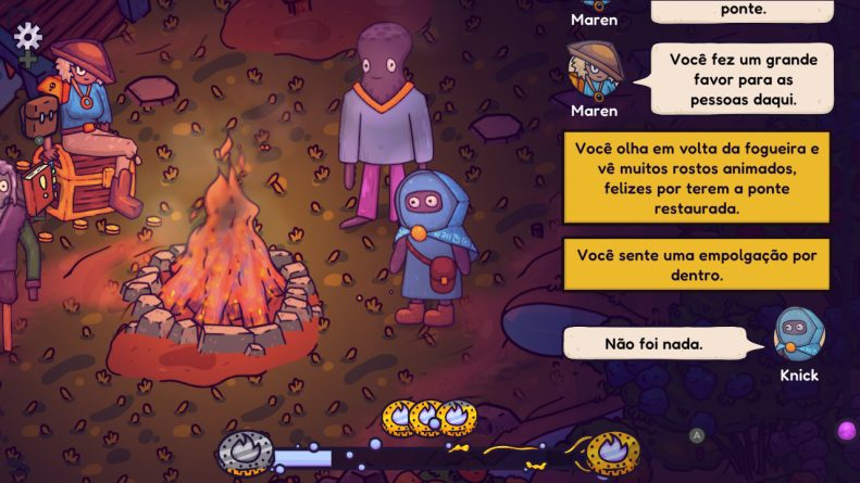 Na pele de Knick, parte-se em uma jornada em busca de um recomeço, barganhando e ajudando os habitantes locais. Almejando ser um bom Cozy Game narrativo, consegue Fireside acertar em executar o que se propõe aos jogadores? Dentre acertos e erros, sim. Tópico a ser melhor elaborado a seguir.