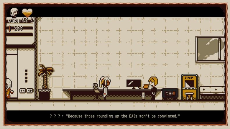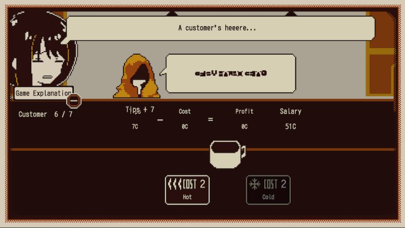 Apesar de boa parte do jogo ser focado na exploração bidimensional da ilha, em alguns lugares você vai encontrar atividades diferentes, provavelmente algum tipo de mini game para entreter. No café por exemplo, a androide que cuida de lá vai lhe pedir uma ajudinha e você precisa tentar adivinhar qual a bebida que vai agradar cada cliente que aparecer, já no hotel você encontra uma máquina arcade com um simples jogo de plataforma que provavelmente vai mais lhe irritar do que lhe divertir por conta da física exagerada.