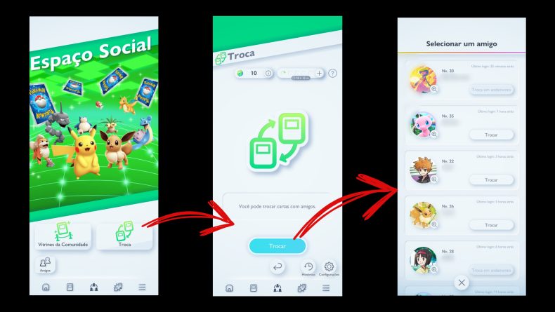 Vamos começar pelo básico: as trocas são feitas entre amigos no jogo. Para iniciar o processo, é necessário entrar no menu de trocas e escolher o amigo desejado.