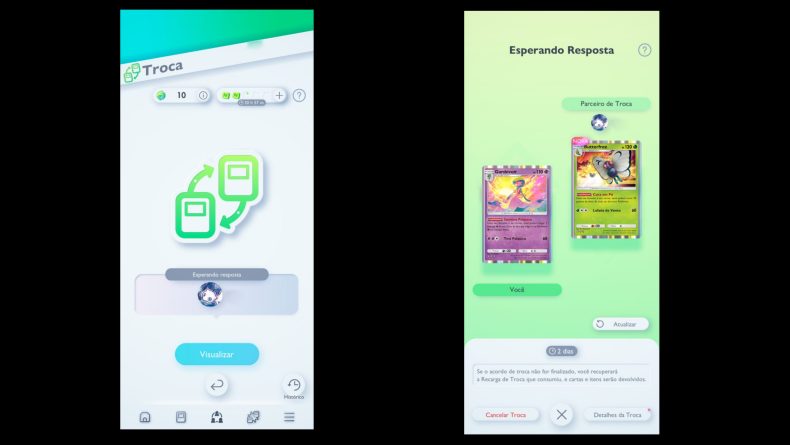Por conta disso, temos duas restrições importantes para as trocas. Primeiramente, toda troca custa pontos de recarga de troca, sendo possível recuperar um ponto a cada 24 horas.