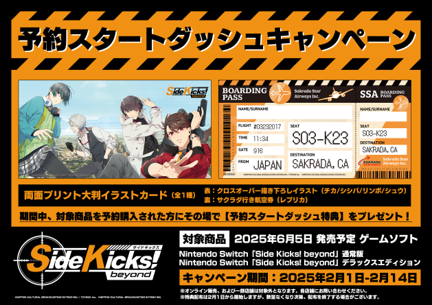 A eXtend junto a TOYBOX Inc. anunciaram esta manhã que Side Kicks! beyond será lançado para o Nintendo Switch dia 5 de junho de 2025 no Japão, com a pré-venda começando dia 1º de fevereiro de 2025. Infelizmente, não se sabe se o jogo chegará ao Ocidente pela PQube ou por outra publisher no momento.