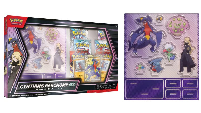 Também lançando no dia 13 de junho, o “Cynthia’s Garchomp ex Premium Collection” irá custar $39.99. Ele apresenta uma segunda versão do Garchomp ex da Cynthia Full Art que virá em Rivais Predestinados, além de seis booster packs e um set de acrílico da Cynthia e seus Pokémon.