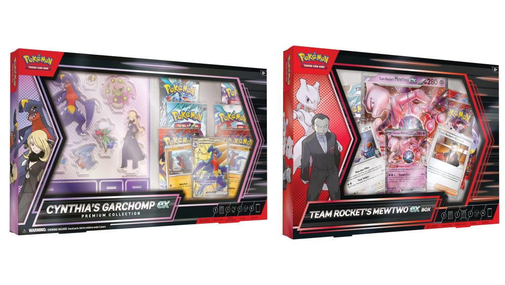 Novos produtos TCG: Box Mewtwo ex da Equipe Rocket e a Premium Collection do Garchomp ex da Cynthia