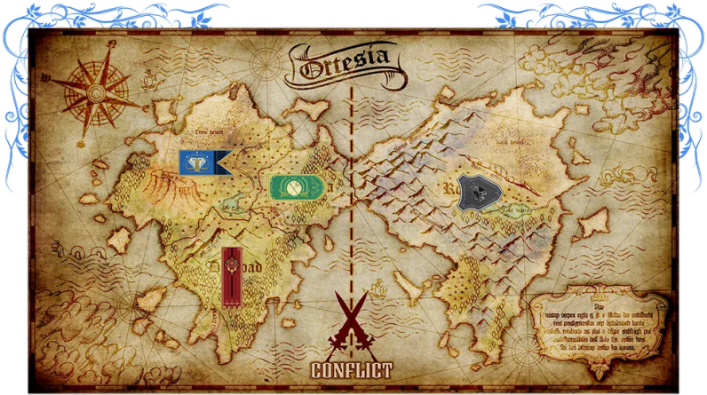 Battlefield Watz se passa no continente ficticio de Ortesia, uma terra dividida no meio por um cinturão de montanhas, onde cada uma das regiões Leste e Oeste desenvolveram-se independentemente uma da outra. Enquanto todo o Leste é governado sob a bandeira do império de Romua, o oeste é dividido em pequenos países, mas que dentre todos eles destacam-se Azul, Milveria e Daigroth respectivamente. Apesar de cada um dos países do Oeste possuir seus costumes e crenças levemente diferentes, as três bandeiras se unem para formar o Nirvana — onde a maior parte da história se passa.