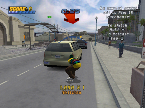 Foi adicionada também uma mecânica chamada skiting, também conhecido no Brasil como “pegar rabeira”. Consiste basicamente em pegar carona em um carro, segurando na parte traseira do veículo — para manter-se segurando na traseira do carro, o jogador deve manter uma barra de equilíbrio assim como em manobras de manual e grinds. Não somente em veículos, mas em fases especificas, também é possível pegar rabeira em animais, como elefantes.